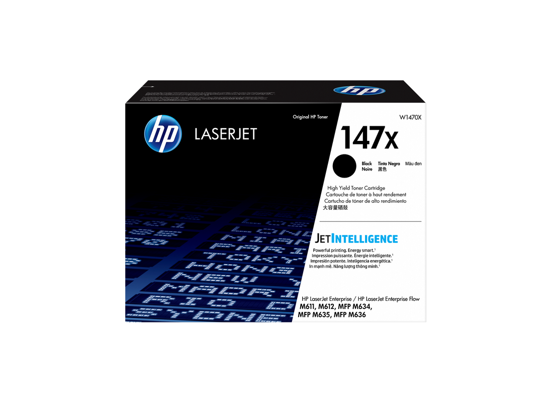 • HP 147 toner cartridges work with: HP LaserJet Enterprise M610dn, M611dn, M611x, M612dn, M612x, HP LaserJet Enterprise MFP M634z, M635fht, M635h, M636fh, Flow MFP M634h, M635z, M636z