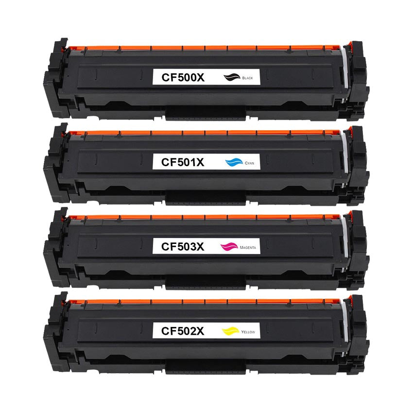 (202X) Set of 4 Hewlett Packard CF500X Toners: Black / Cyan / Magenta / Yellow (Compatible Toner Cartridges)
